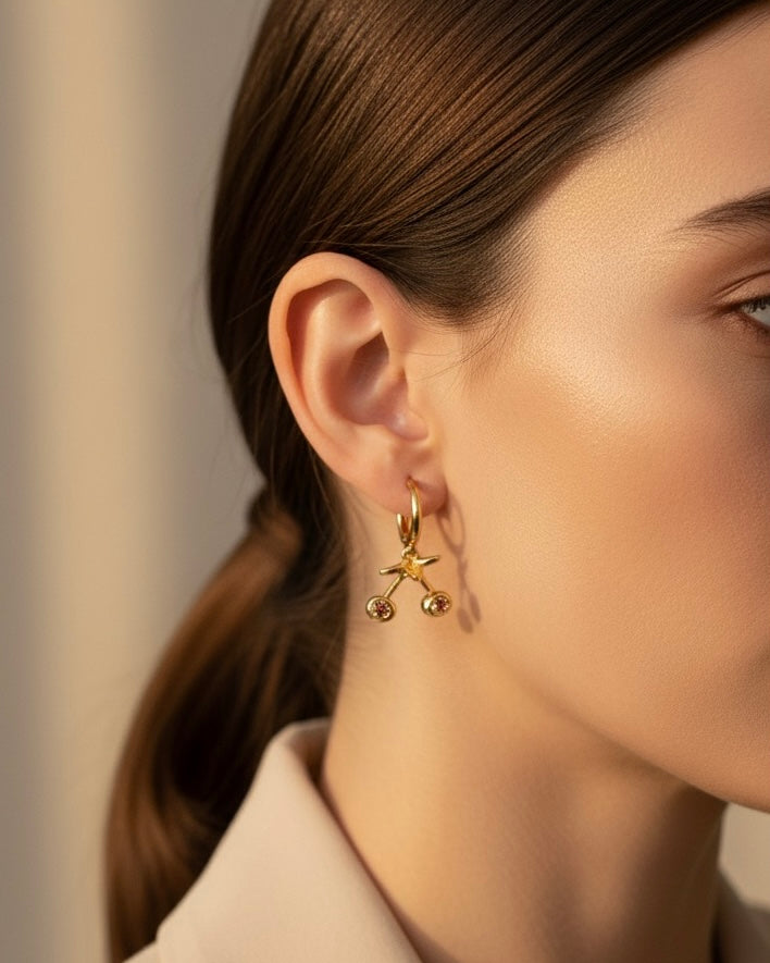 Huggies medianos colgantes de oro laminado de 18 k